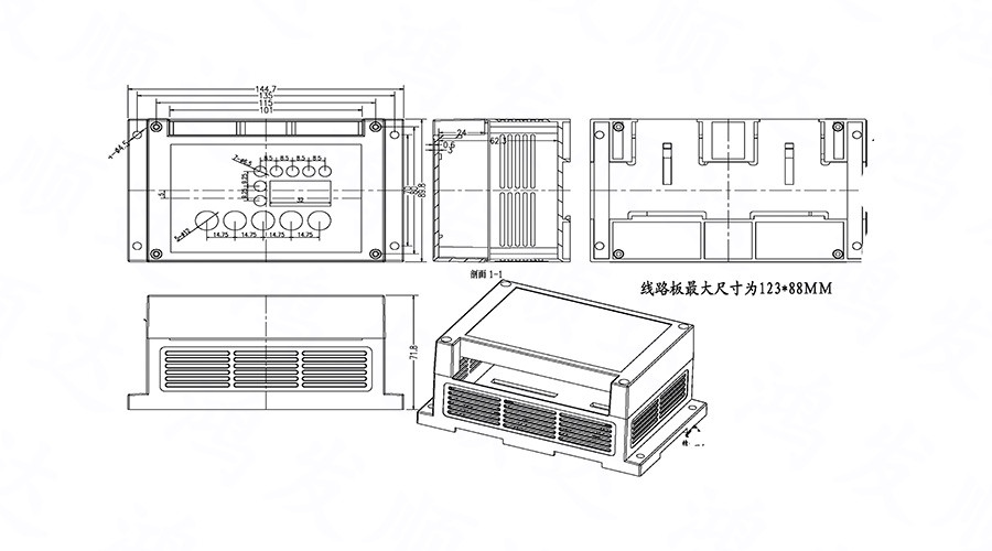 簡介:廣泛應(yīng)用于電子行業(yè)中各種PLC模塊電路、控制器單元、配電器模塊等 。具有完全絕緣性保護(hù)、散熱性良好等特點。均采用ABS/PC原料生產(chǎn),符合ROHS環(huán)保標(biāo)準(zhǔn)、性能好、耐高溫,不加入任何再生料??筛鶕?jù)客戶要求重新開模具。